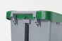 Grote wielen en een handvat maken het gemakkelijk om de container te verplaatsen.