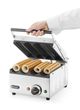 De HENDI Contactgrill voor hotdogs en wraps is een duurzame, compacte grill met een roestvaststalen behuizing en geëmailleerde gietijzeren roosters voor consistente, hoogwaardige resultaten. Met 4 grillsleuven, indicatielampjes, een grilloppervlak van 270 x 250 mm en antislipvoeten is deze grill ideaal voor het efficiënt bereiden van hotdogs of broodjes voor professionele doeleinden.