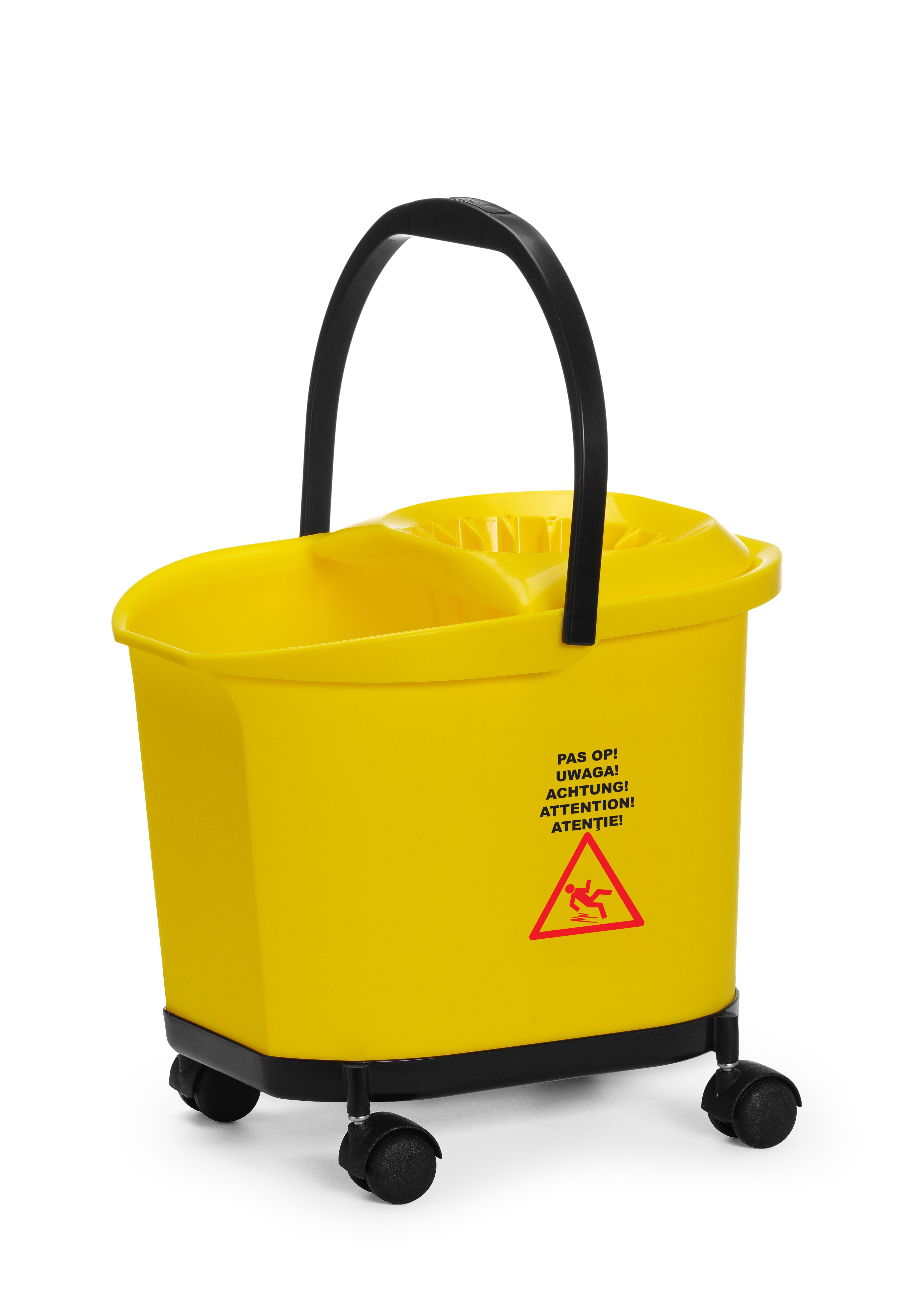De 4 wielen zorgen voor snelle en eenvoudige mobiliteit, waardoor de emmer eenvoudig te verplaatsen is.