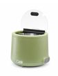 Deksel van gehard glas met geïsoleerde handgreep, lepeluitsparing en aluminium scharnier.