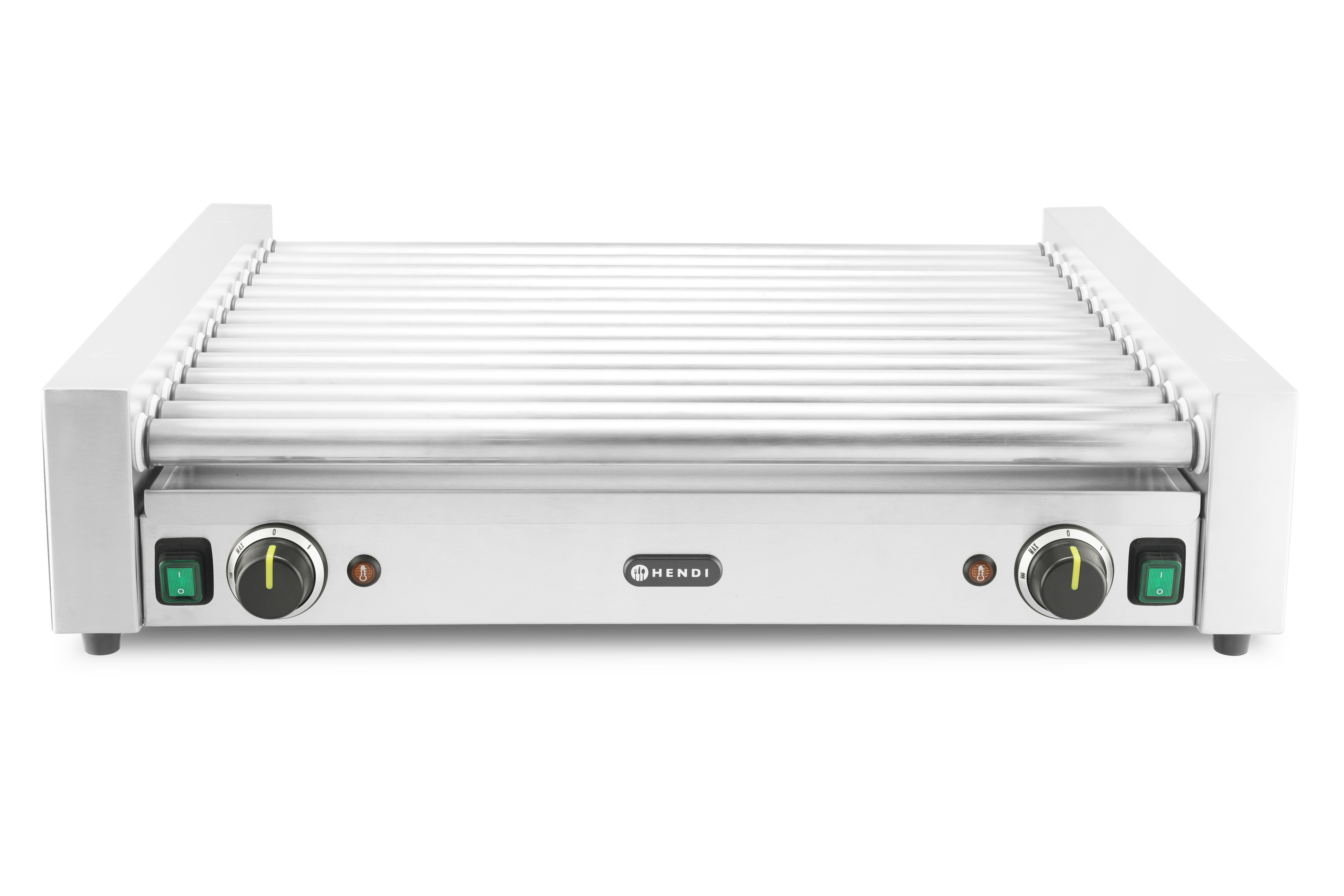 De HENDI worstrolgrill XL – 2 zones is gebouwd met een duurzame behuizing en rollers, verwarmt snel en behoudt een constante temperatuur dankzij snel warmteherstel. Met 2 onafhankelijk regelbare verwarmingszones en een rollerbreedte van 65 cm biedt het flexibiliteit tijdens drukke serviceperiodes. Een uitneembare lekbak zorgt voor eenvoudig schoonmaken en het behoud van hygiëne.